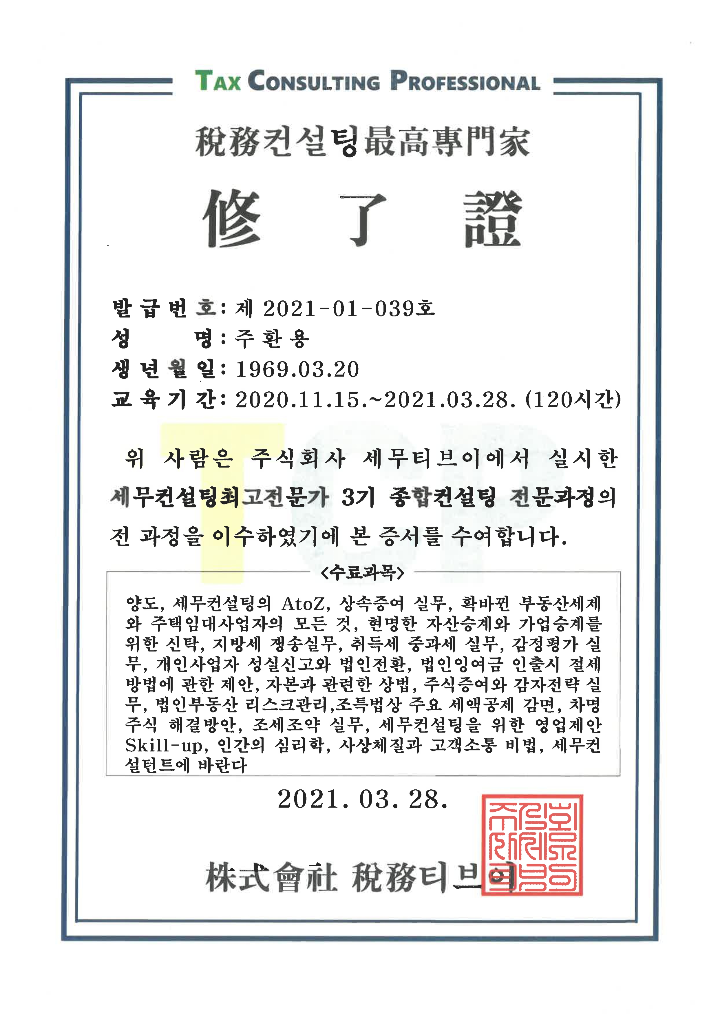 ---------------------------------주환용세무사,회계사의 이력----------------